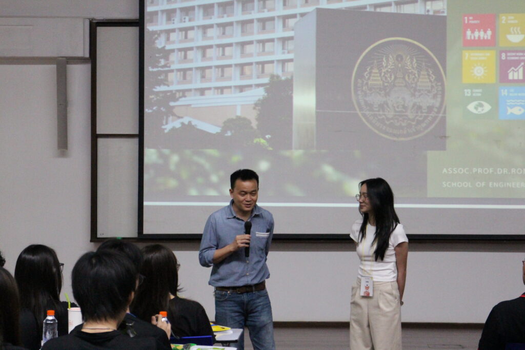 The program kicked off with motivating opening remarks from Asst. Prof. Dr. Thitiphan Tritrakarn, Executive Vice President for Student Affairs and Alumni Relations, Asst. Prof. Dr. Pitcha Prasitmeeboon, Vice President for International Affairs, and Mr. Chua Kay Chiang from Singapore Polytechnic. Students then connected through ice-breaking activities and explored the topic of Sustainable Development Goals (SDGs) in a lecture by Asst. Prof. Dr. Ronnachai Tiyarattanachai.